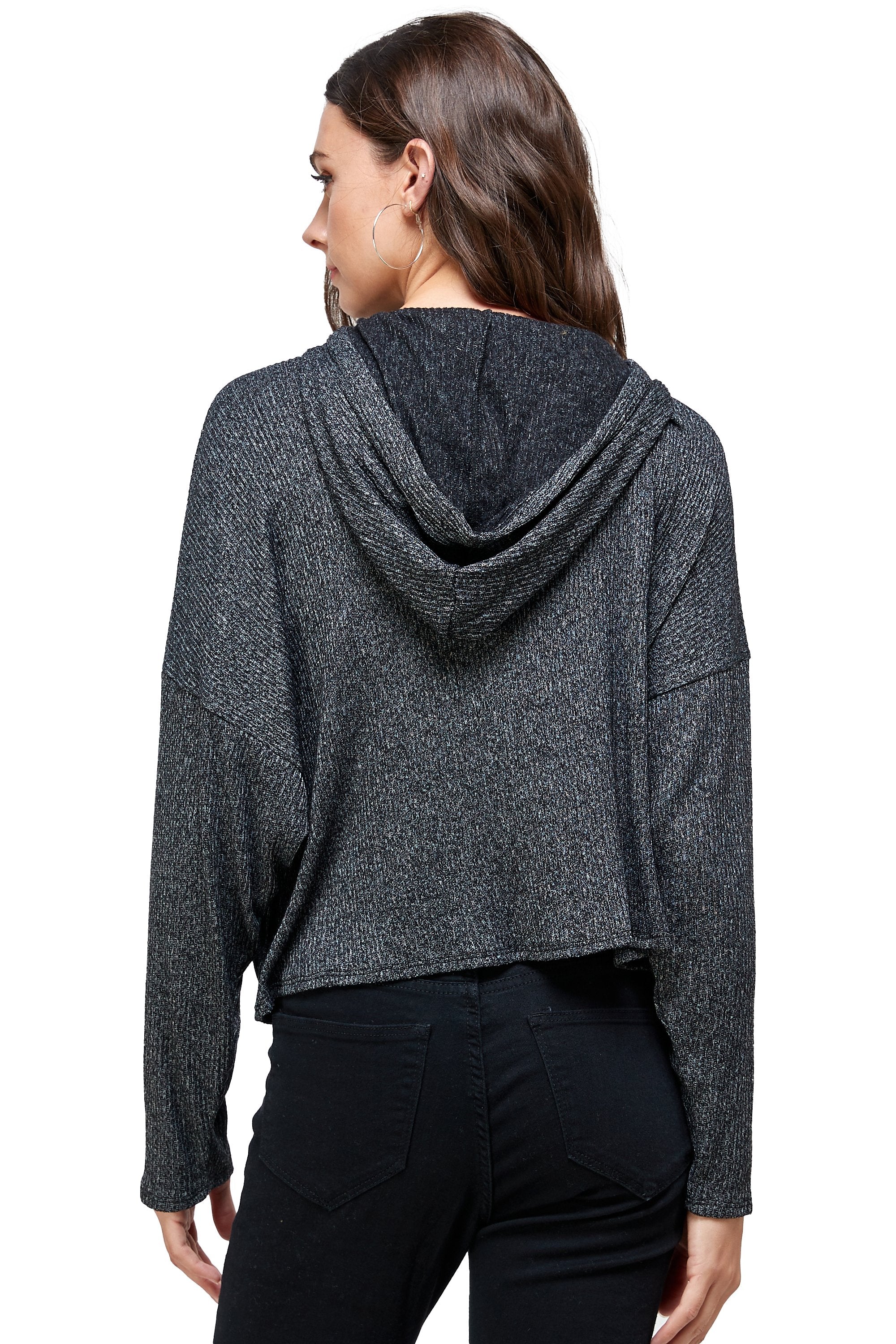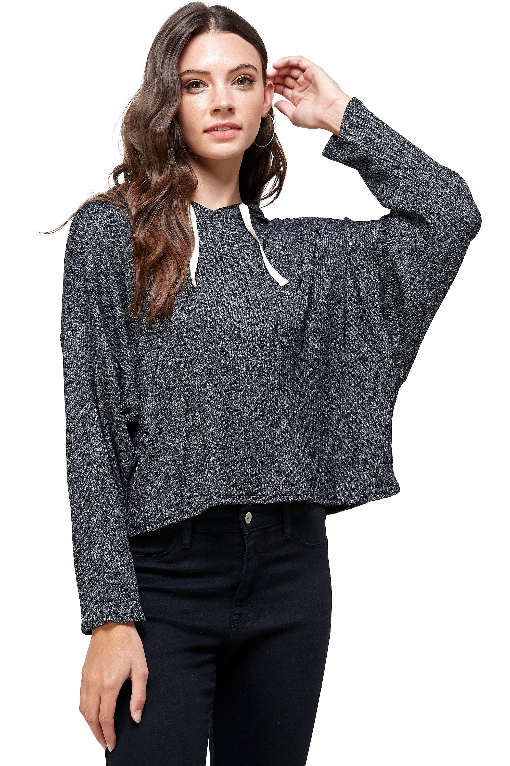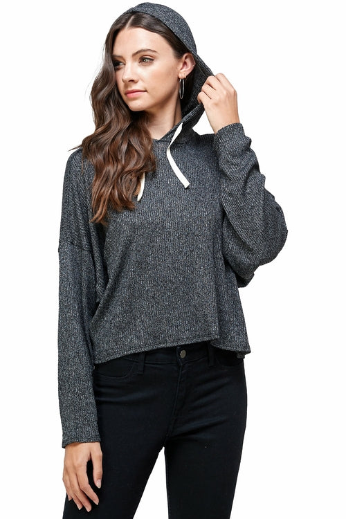 BRUSHED TWO TONE SWEATER RIB HOODED TOP