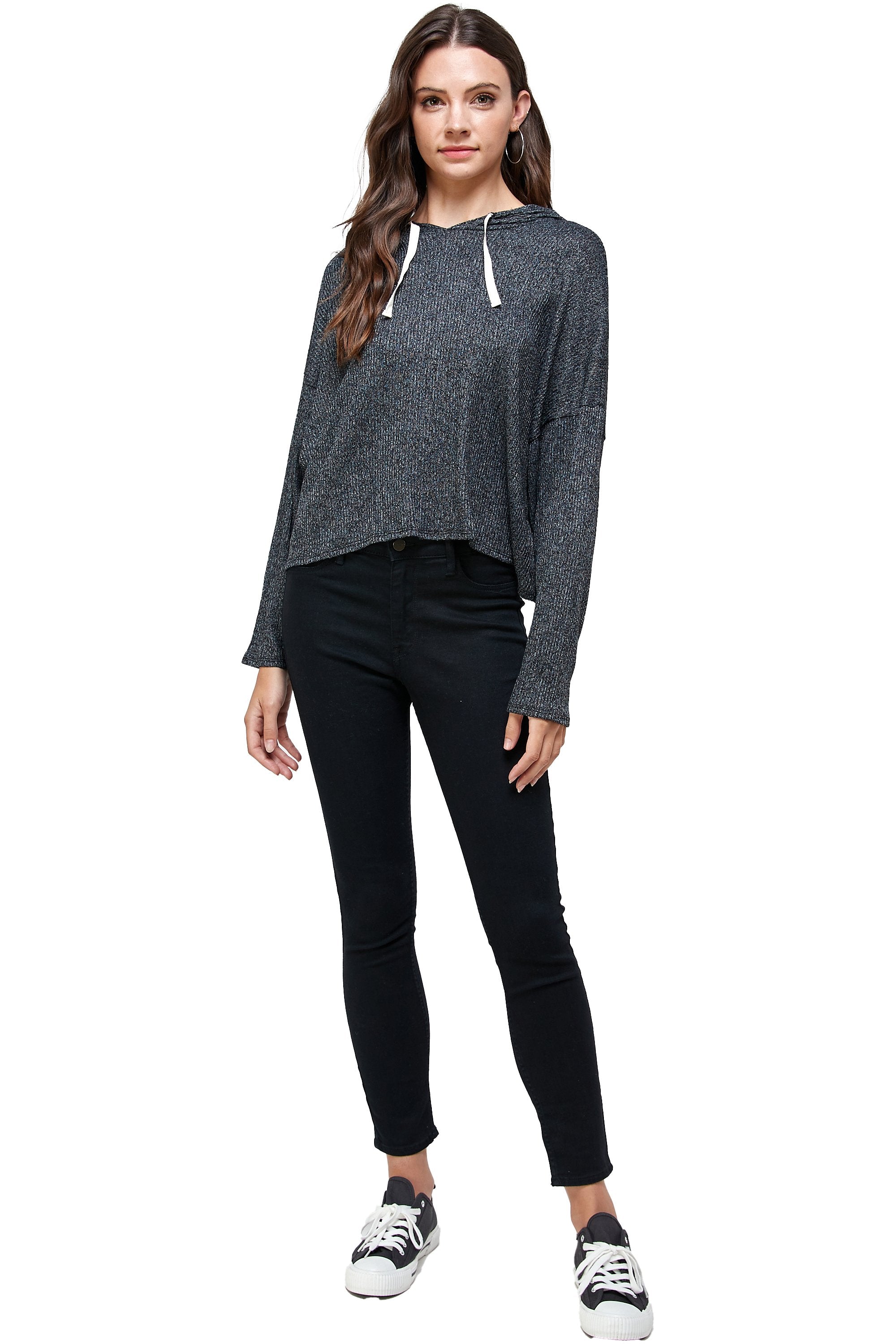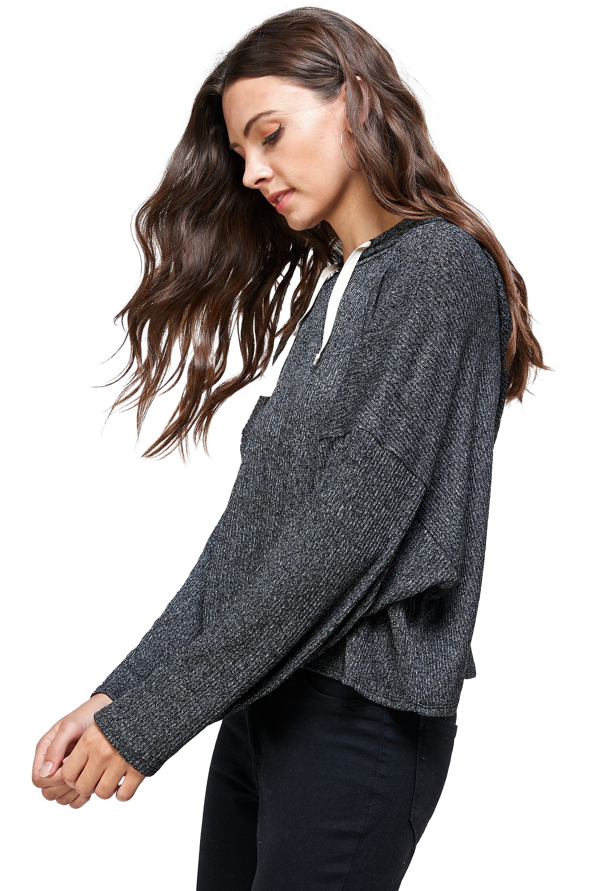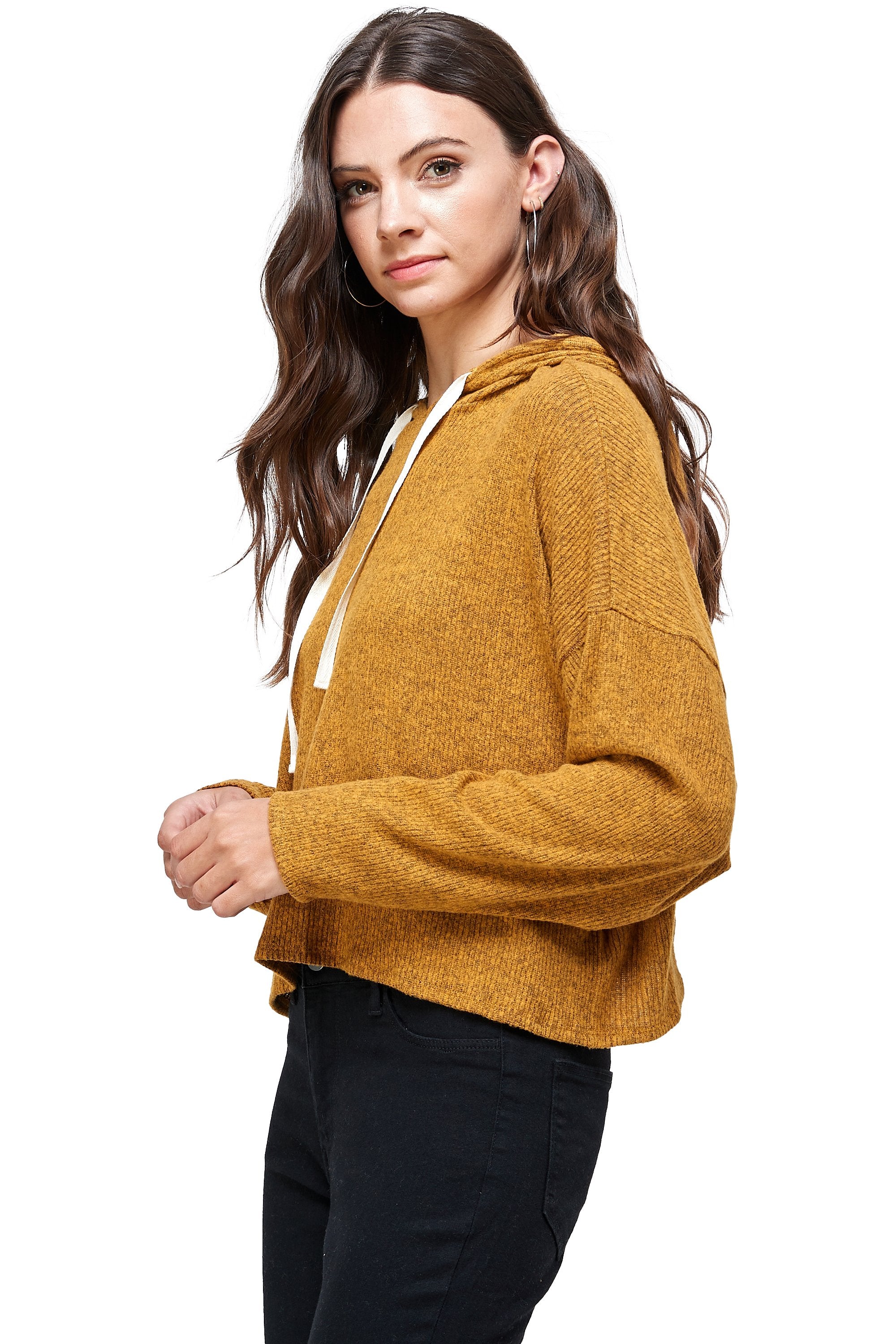 BRUSHED TWO TONE SWEATER RIB HOODED TOP