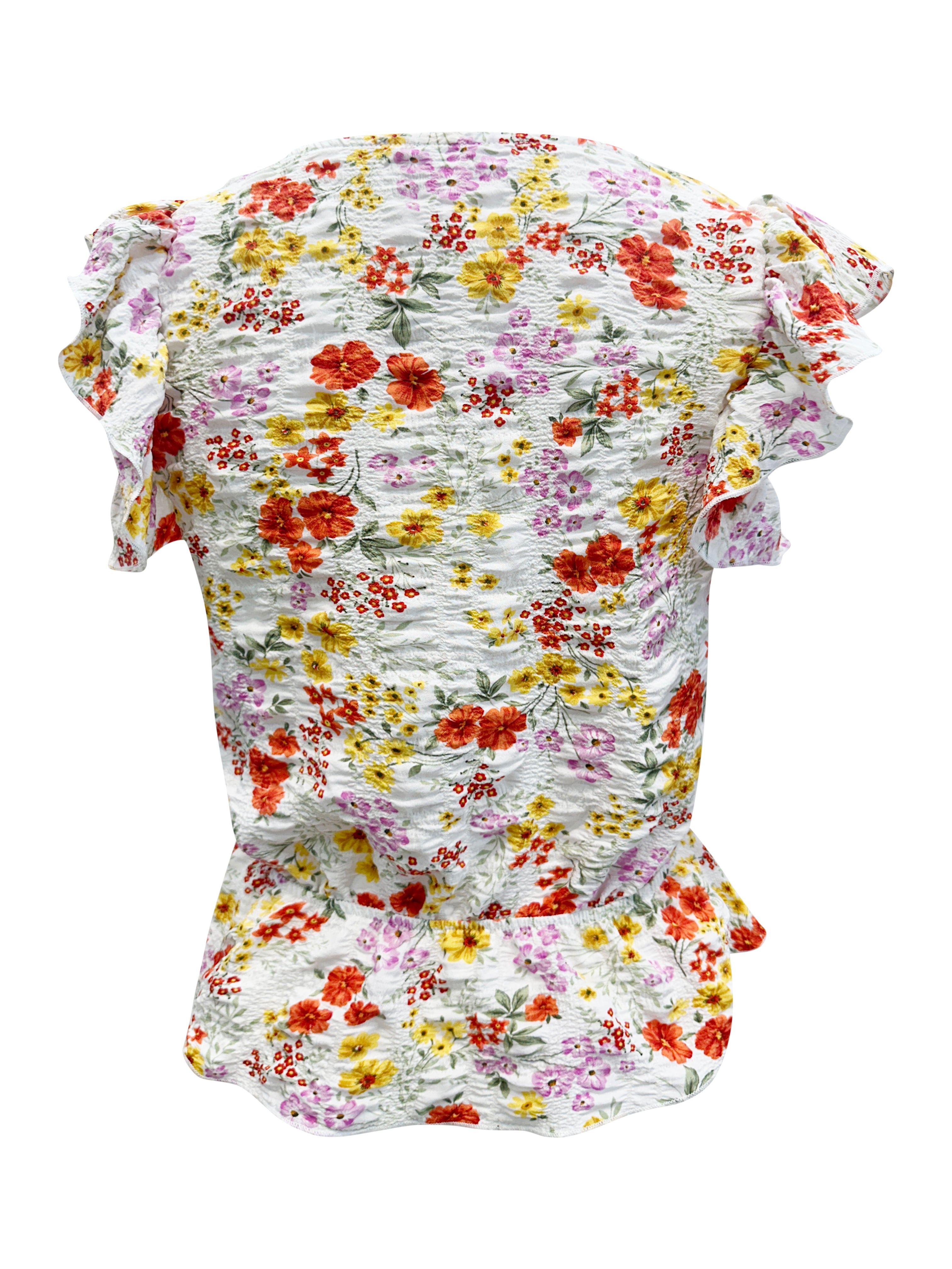 Flutter sleeve V neck peplum top with floral print Read more Read more