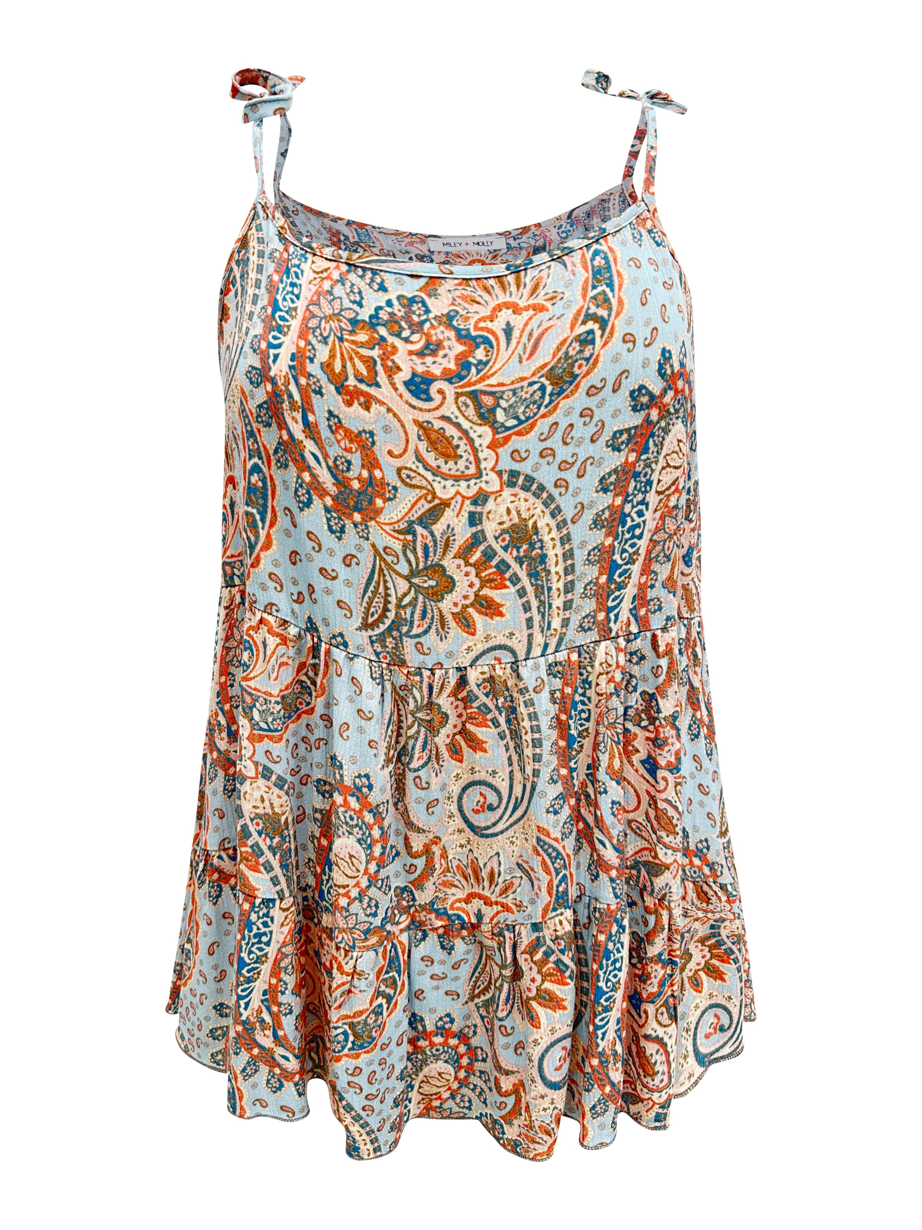 Sale -22% Product form Paisley Print Tiered Dress – Boho Summer Vibes $38.00$49.00 Size S L M Color Blue SKU: M6099ST-BLUE-S Add to cart This item is a recurring or deferred purchase. By continuing, I agree to the cancellation policy and authorize you to charge my payment method at the prices, frequency and dates listed on this page until my order is fulfilled or I cancel, if permitted. 3 tiered tie shoulder loose fit flared bottom top Read more Read more Delivery Time 3-7 Dasys Share with your friends Share WhatsApp Deel X Pin it Messenger Email Description 3 tiered tie shoulder loose fit flared bottom top