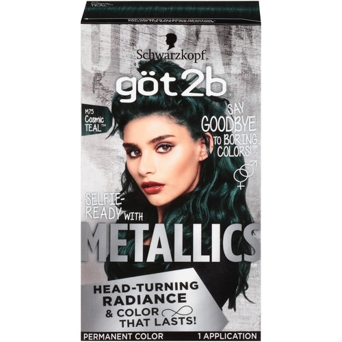 Product form SCHWARZKOPF Metallics Permanent Hair Color $19.99 Color Cosmic Teal SKU: GOT2BMETAL-COSMICTEAL-10811 19 products in stock Add to cart This item is a recurring or deferred purchase. By continuing, I agree to the cancellation policy and authorize you to charge my payment method at the prices, frequency and dates listed on this page until my order is fulfilled or I cancel, if permitted. Say goodbye to boring colors! All eyes are on you with got2b Metallics permanent color. Boost your hair color with... Read more Read more Delivery Time 3-7 Dasys Share with your friends Share WhatsApp Deel X Pin it Messenger Email Description Say goodbye to boring colors! All eyes are on you with got2b Metallics permanent color. Boost your hair color with trendy metallic shades.