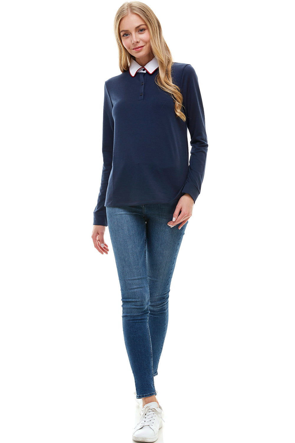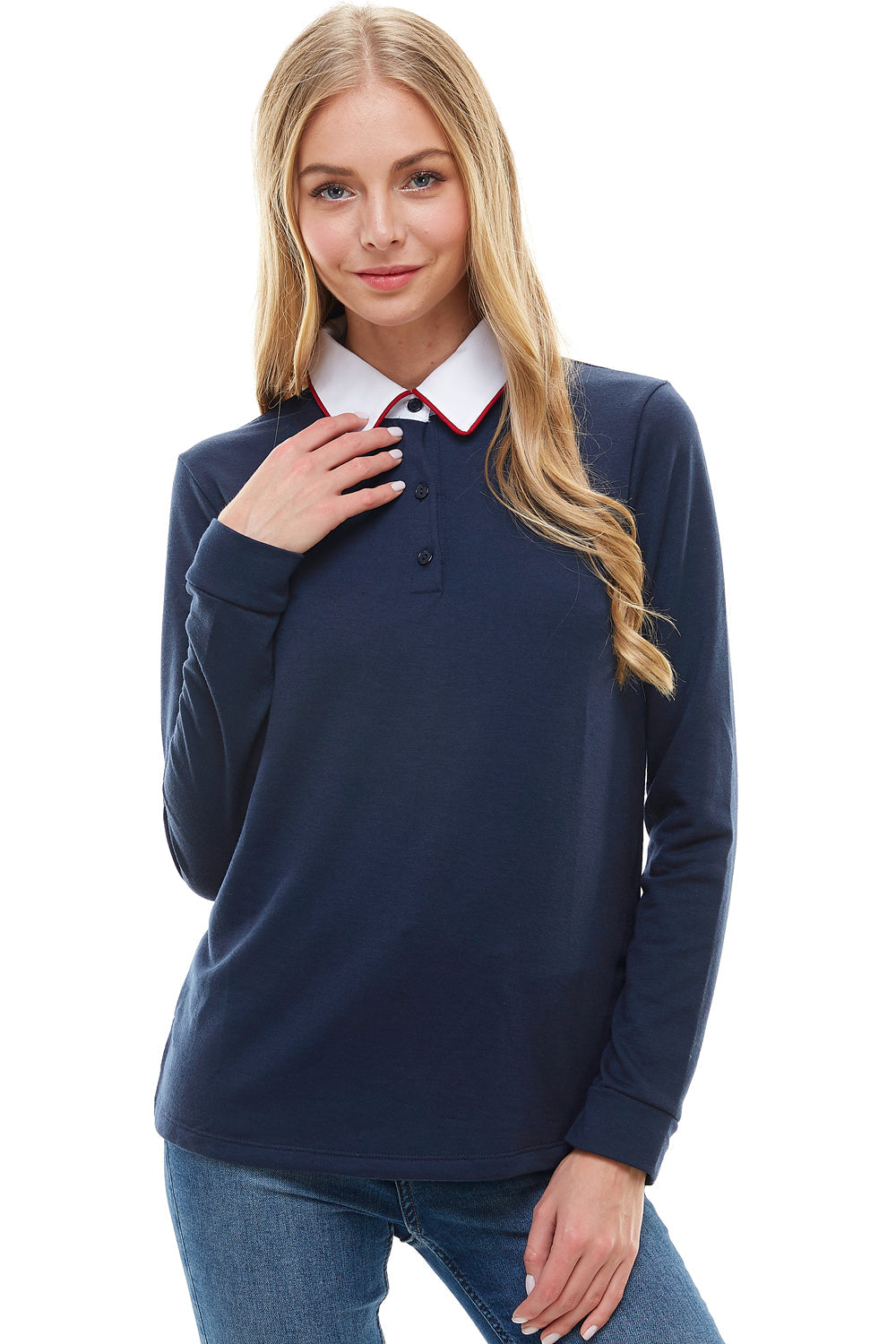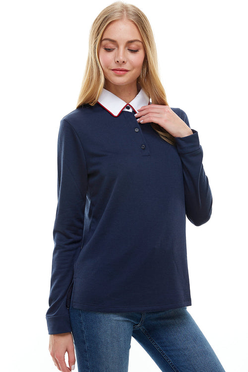 Women's Long Sleeve Polo Shirt with Contrast Collar